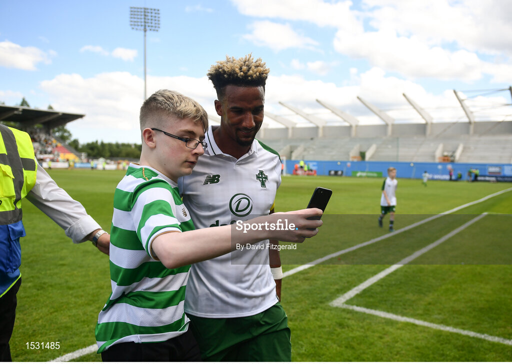 7 July 2018; A young fan takes a selfie with Scott Sinclair of Celtic following the friendly match between Shamrock Rovers and Glasgow Celtic at Tallaght Stadium in Tallaght, Co. Dublin. Photo by David Fitzgerald/Sportsfile