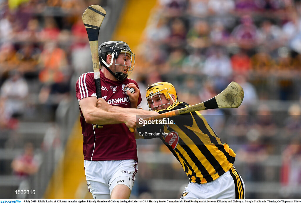 8 July 2018; Richie Leahy of Kilkenny in action against Pádraig Mannion of Galway during the Leinster GAA Hurling Senior Championship Final Replay match between Kilkenny and Galway at Semple Stadium in Thurles, Co Tipperary. Photo by Brendan Moran/Sportsfile