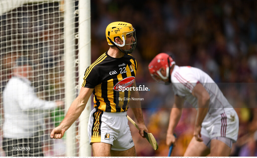 8 July 2018; Colin Fennelly of Kilkenny celebrates after scoring his side's second goal during the Leinster GAA Hurling Senior Championship Final Replay match between Kilkenny and Galway at Semple Stadium in Thurles, Co Tipperary. Photo by Eóin Noonan/Sportsfile