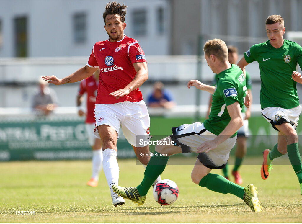 8 July 2018; Seamus Sharkey of Sligo Rovers in action against Kevin Lynch of Bray Wanderers during the SSE Airtricity League Premier Division match between Bray Wanderers and Sligo Rovers at the Carlisle Grounds in Bray, Co Wicklow. Photo by Matt Browne/Sportsfile