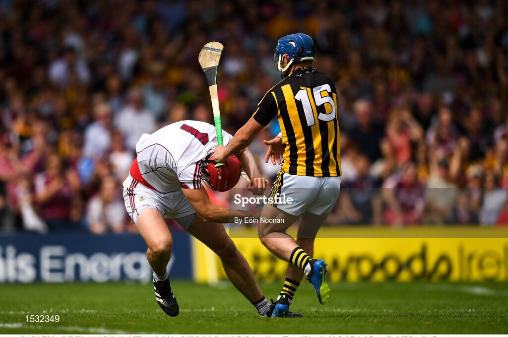 8 July 2018; James Skehill of Galway is tackled by Ger Aylward of Kilkenny during the Leinster GAA Hurling Senior Championship Final Replay match between Kilkenny and Galway at Semple Stadium in Thurles, Co Tipperary. Photo by Eóin Noonan/Sportsfile