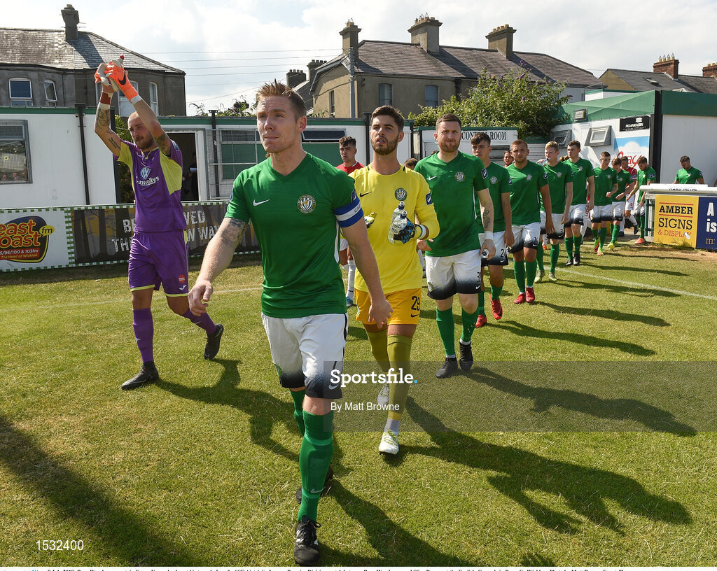 8 July 2018; Bray Wanderers captain Conor Kenna leads out his team before the SSE Airtricity League Premier Division match between Bray Wanderers and Sligo Rovers at the Carlisle Grounds in Bray, Co Wicklow. Photo by Matt Browne/Sportsfile