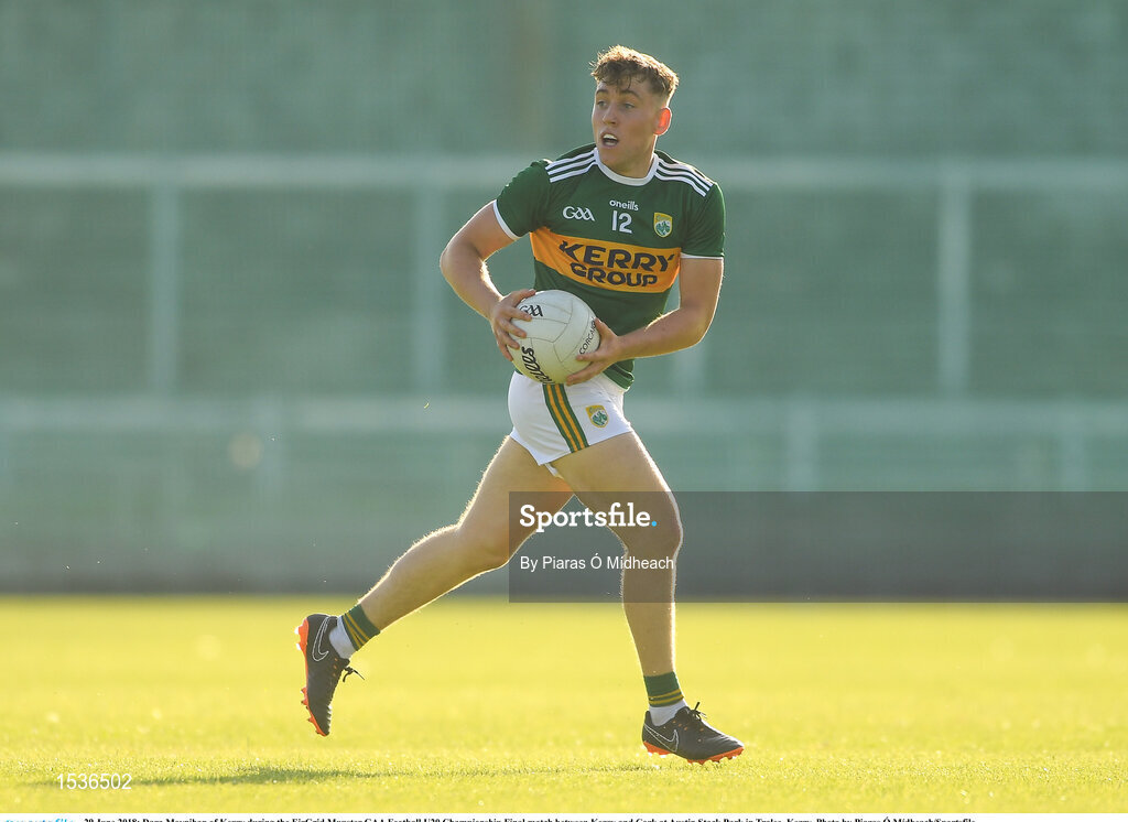29 June 2018; Dara Moynihan of Kerry during the EirGrid Munster GAA Football U20 Championship Final match between Kerry and Cork at Austin Stack Park in Tralee, Kerry. Photo by Piaras Ó Mídheach/Sportsfile