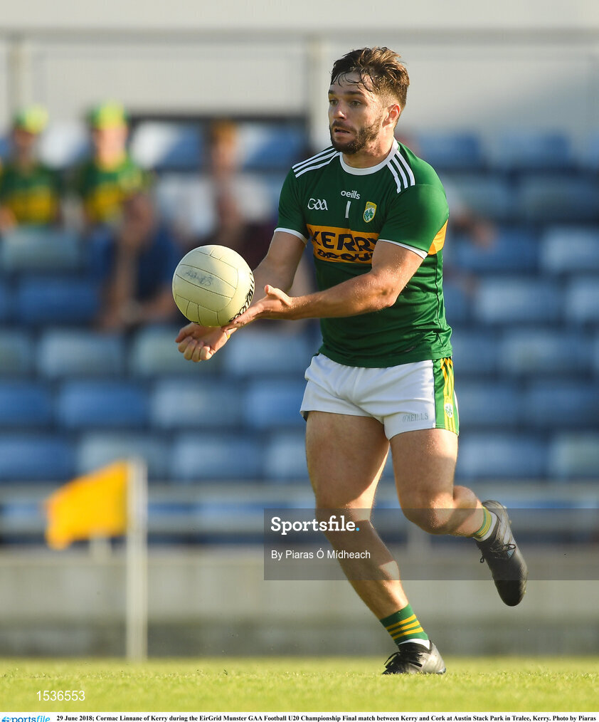 29 June 2018; Cormac Linnane of Kerry during the EirGrid Munster GAA Football U20 Championship Final match between Kerry and Cork at Austin Stack Park in Tralee, Kerry. Photo by Piaras Ó Mídheach/Sportsfile