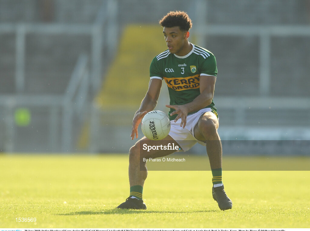 29 June 2018; Stefan Okunbor of Kerry during the EirGrid Munster GAA Football U20 Championship Final match between Kerry and Cork at Austin Stack Park in Tralee, Kerry. Photo by Piaras Ó Mídheach/Sportsfile