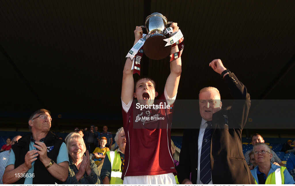 13 July 2018; Galway captain Conor Raftery lifts the cup following the Electric Ireland Connacht GAA Minor Championship Final match between Roscommon and Galway at Dr Hyde Park in Roscommon. Photo by Matt Browne/Sportsfile