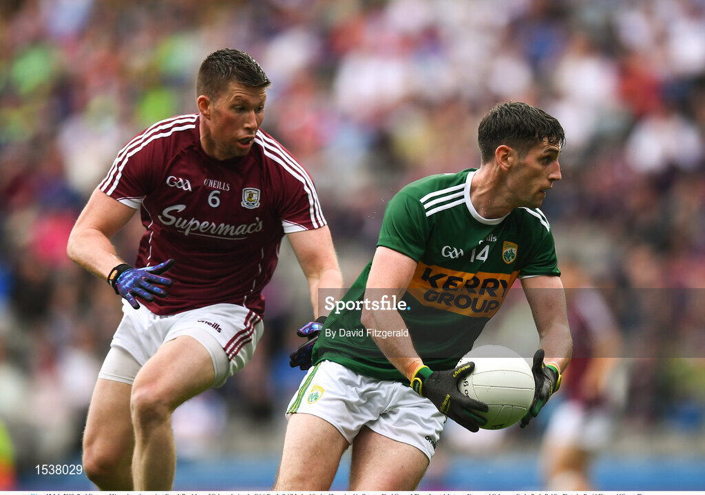 15 July 2018; Paul Geaney of Kerry in action against Gareth Bradshaw of Galway during the GAA Football All-Ireland Senior Championship Quarter-Final Group 1 Phase 1 match between Kerry and Galway at Croke Park, Dublin. Photo by David Fitzgerald/Sportsfile