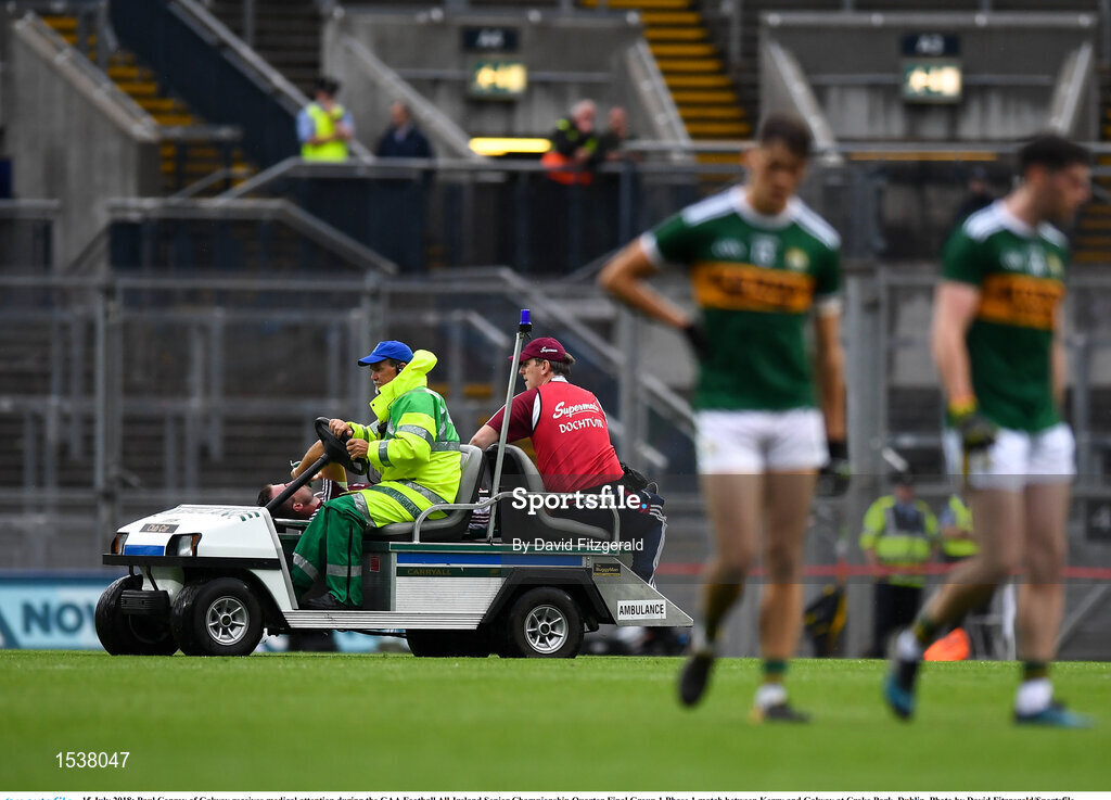 15 July 2018; Paul Conroy of Galway receives medical attention during the GAA Football All-Ireland Senior Championship Quarter-Final Group 1 Phase 1 match between Kerry and Galway at Croke Park, Dublin. Photo by David Fitzgerald/Sportsfile