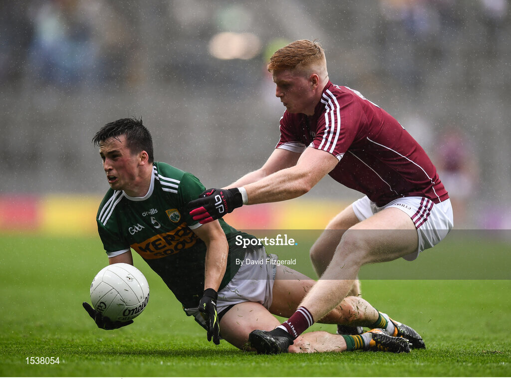 15 July 2018; Paul Murphy of Kerry in action against Seán Andy Ó Ceallaigh of Galway during the GAA Football All-Ireland Senior Championship Quarter-Final Group 1 Phase 1 match between Kerry and Galway at Croke Park, Dublin. Photo by David Fitzgerald/Sportsfile