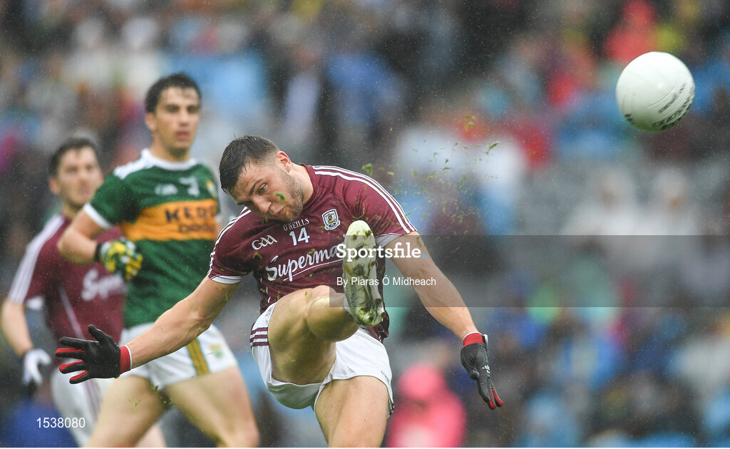 15 July 2018; Damien Comer of Galway scores a first half point during the GAA Football All-Ireland Senior Championship Quarter-Final Group 1 Phase 1 match between Kerry and Galway at Croke Park, Dublin. Photo by Piaras Ó Mídheach/Sportsfile