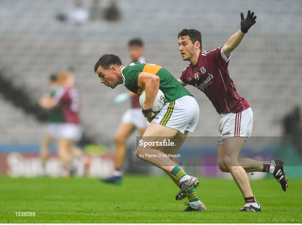 15 July 2018; Jack Barry of Kerry in action against Ian Burke of Galway during the GAA Football All-Ireland Senior Championship Quarter-Final Group 1 Phase 1 match between Kerry and Galway at Croke Park, Dublin. Photo by Piaras Ó Mídheach/Sportsfile