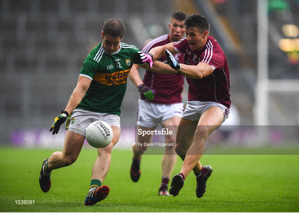 15 July 2018; Stephen O’Brien of Kerry in action against Shane Walsh of Galway during the GAA Football All-Ireland Senior Championship Quarter-Final Group 1 Phase 1 match between Kerry and Galway at Croke Park, Dublin. Photo by David Fitzgerald/Sportsfile