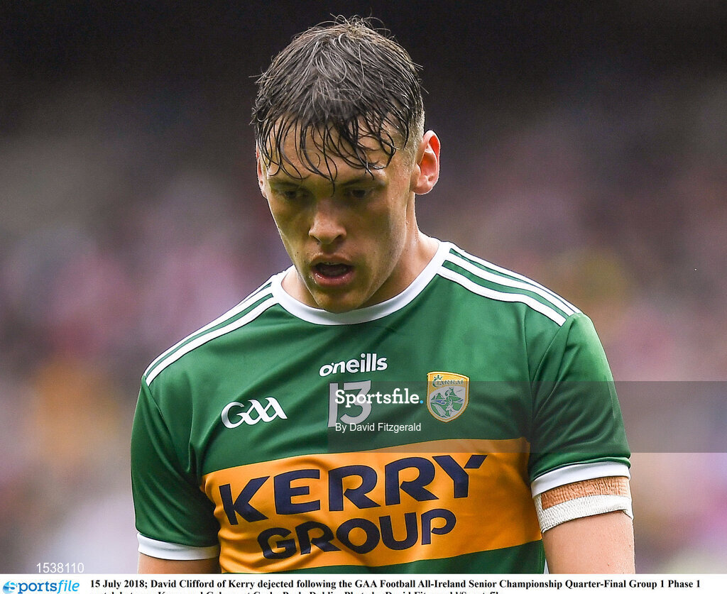 15 July 2018; David Clifford of Kerry dejected following the GAA Football All-Ireland Senior Championship Quarter-Final Group 1 Phase 1 match between Kerry and Galway at Croke Park, Dublin. Photo by David Fitzgerald/Sportsfile