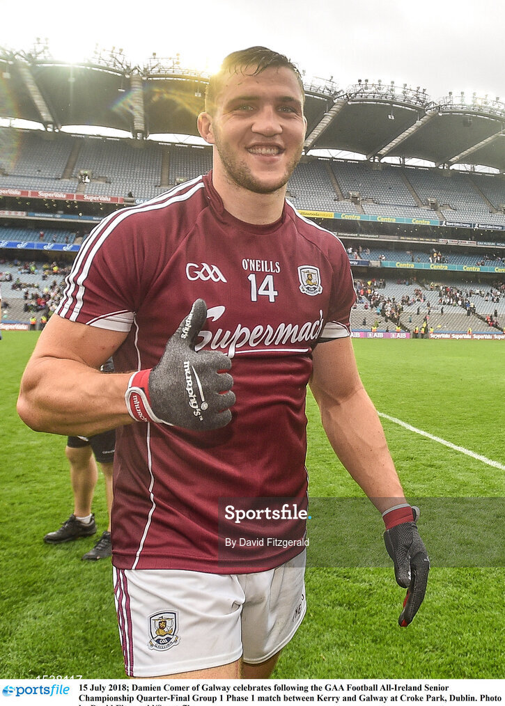 15 July 2018; Damien Comer of Galway celebrates following the GAA Football All-Ireland Senior Championship Quarter-Final Group 1 Phase 1 match between Kerry and Galway at Croke Park, Dublin. Photo by David Fitzgerald/Sportsfile