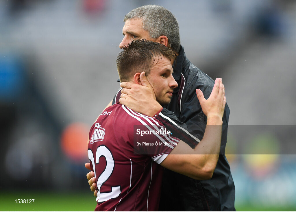 15 July 2018; Galway manager Kevin Walsh with Eoghan Kerin after the GAA Football All-Ireland Senior Championship Quarter-Final Group 1 Phase 1 match between Kerry and Galway at Croke Park, Dublin. Photo by Piaras Ó Mídheach/Sportsfile