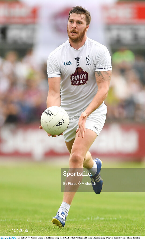 22 July 2018; Johnny Byrne of Kildare during the GAA Football All-Ireland Senior Championship Quarter-Final Group 1 Phase 2 match between Kildare and Galway at St Conleth's Park in Newbridge, Co Kildare. Photo by Piaras Ó Mídheach/Sportsfile