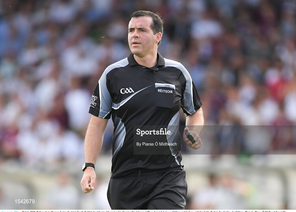 22 July 2018; Referee Seán Hurson during the GAA Football All-Ireland Senior Championship Quarter-Final Group 1 Phase 2 match between Kildare and Galway at St Conleth's Park in Newbridge, Co Kildare. Photo by Piaras Ó Mídheach/Sportsfile