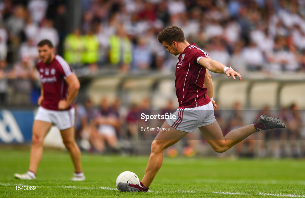 22 July 2018; Shane Walsh of Galway takes a free during the GAA Football All-Ireland Senior Championship Quarter-Final Group 1 Phase 2 match between Kildare and Galway at St Conleth's Park in Newbridge, Co Kildare. Photo by Sam Barnes/Sportsfile