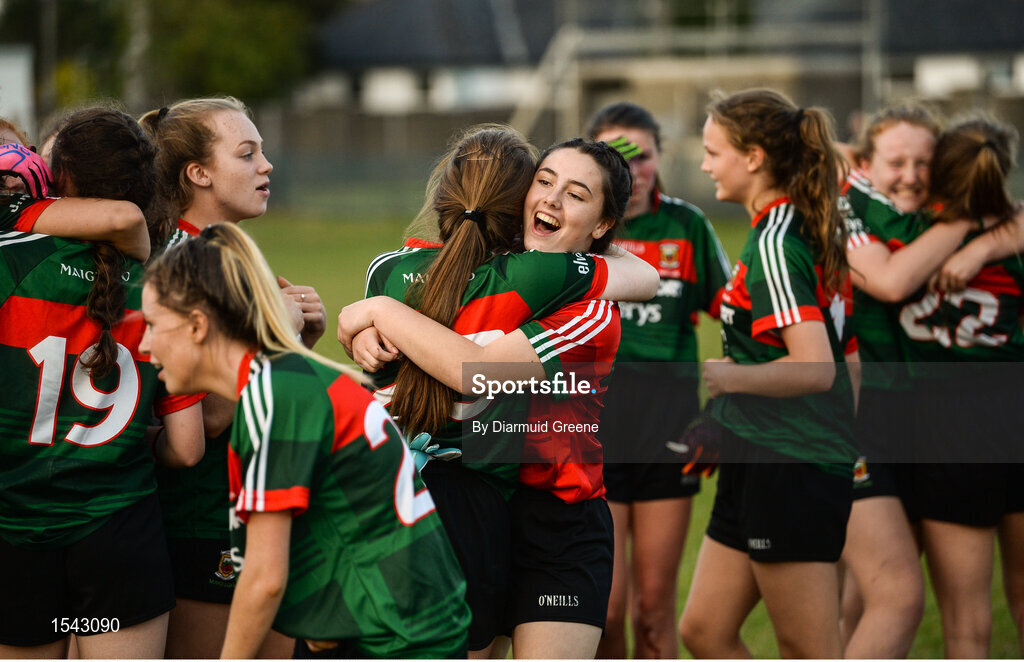 25 July 2018; Laura Gibbons, right, and Ellie Mahon of Mayo celebrate after the All-Ireland Ladies Football U16 B Championship Final between Laois and Mayo at Duggan Park in Ballinasloe, Co. Galway. Photo by Diarmuid Greene/Sportsfile