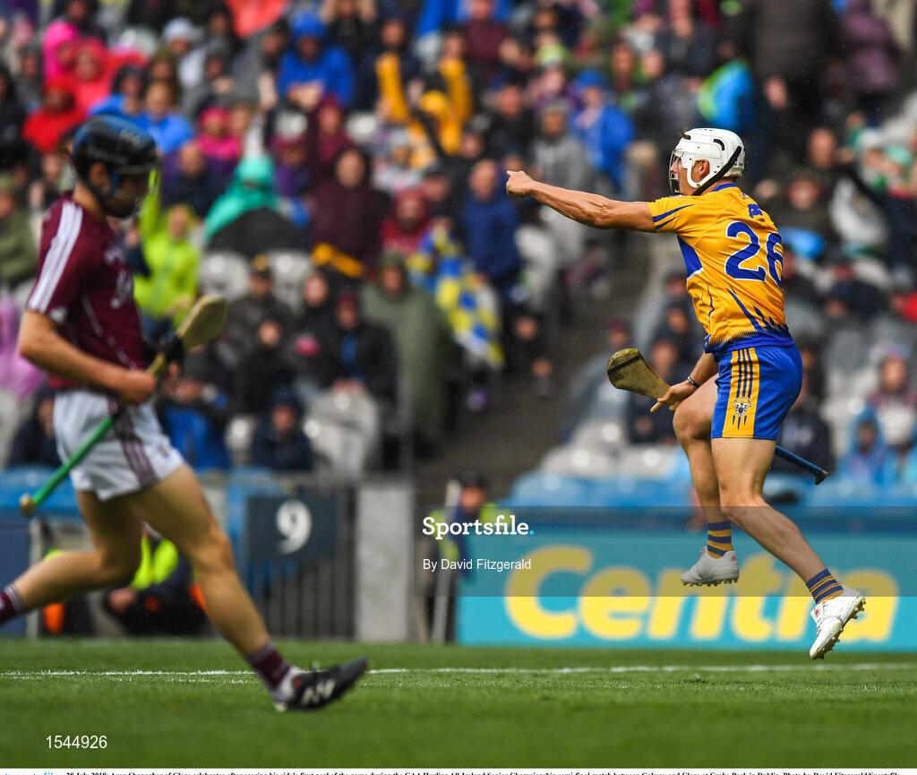 28 July 2018; Aron Shanagher of Clare celebrates after scoring his side's first goal of the game during the GAA Hurling All-Ireland Senior Championship semi-final match between Galway and Clare at Croke Park in Dublin. Photo by David Fitzgerald/Sportsfile
