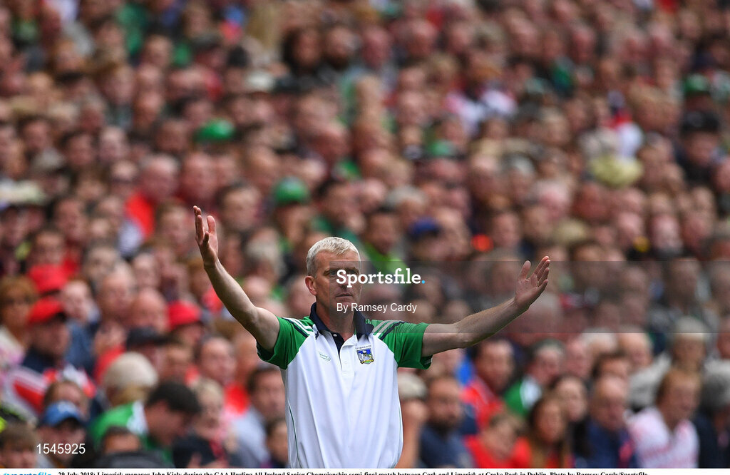 29 July 2018; Limerick manager John Kiely during the GAA Hurling All-Ireland Senior Championship semi-final match between Cork and Limerick at Croke Park in Dublin. Photo by Ramsey Cardy/Sportsfile