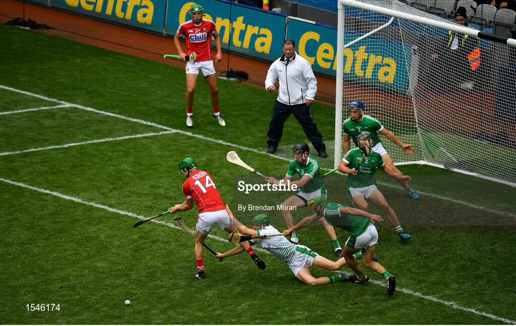 29 July 2018; Limerick goalkeeper Nickie Quaid makes a save from Seamus Harnedy of Cork in the final moments of the GAA Hurling All-Ireland Senior Championship semi-final match between Cork and Limerick at Croke Park in Dublin. Photo by Brendan Moran/Sportsfile