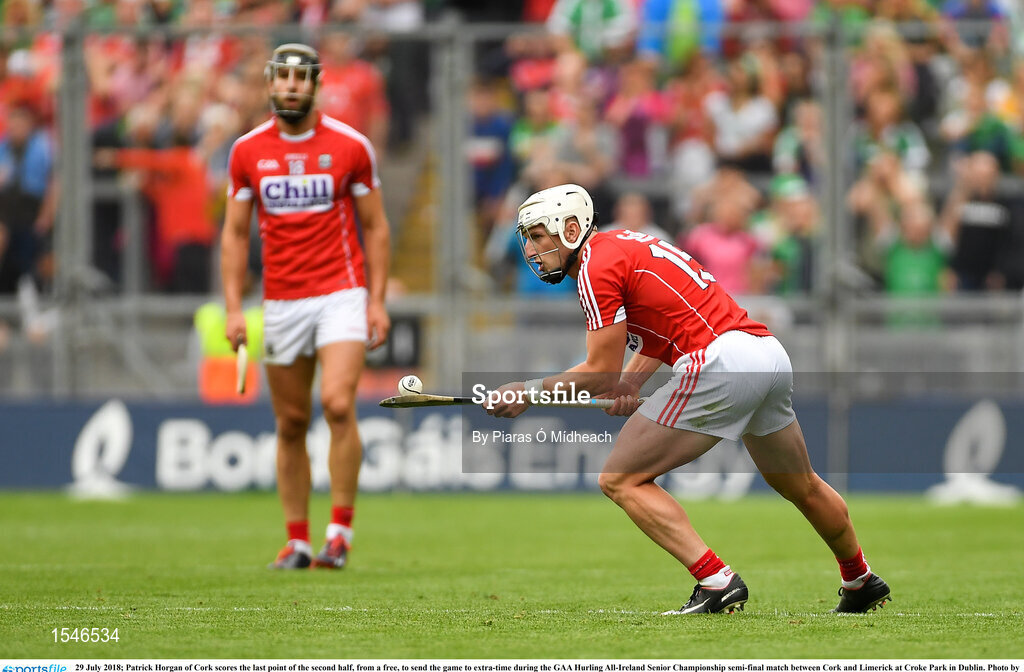 29 July 2018; Patrick Horgan of Cork scores the last point of the second half, from a free, to send the game to extra-time during the GAA Hurling All-Ireland Senior Championship semi-final match between Cork and Limerick at Croke Park in Dublin. Photo by Piaras Ó Mídheach/Sportsfile