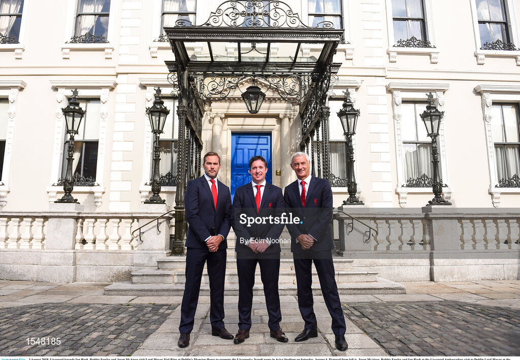3 August 2018; Liverpool legends Ian Rush, Robbie Fowler and Jason McAteer visit Lord Mayor Nial Ring at Dublin's Mansion House to promote the Liverpool v Napoli game in Aviva Stadium on Saturday, August 4. Pictured from left is, Jason McAteer, Robbie Fowler and Ian Rush at the Liverpool Ambassadors visit to Dublin Lord Mayor at the Mansion House in Dublin. Photo by Eóin Noonan/Sportsfile