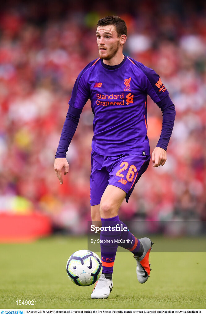 4 August 2018; Andy Robertson of Liverpool during the Pre Season Friendly match between Liverpool and Napoli at the Aviva Stadium in Dublin. Photo by Stephen McCarthy/Sportsfile