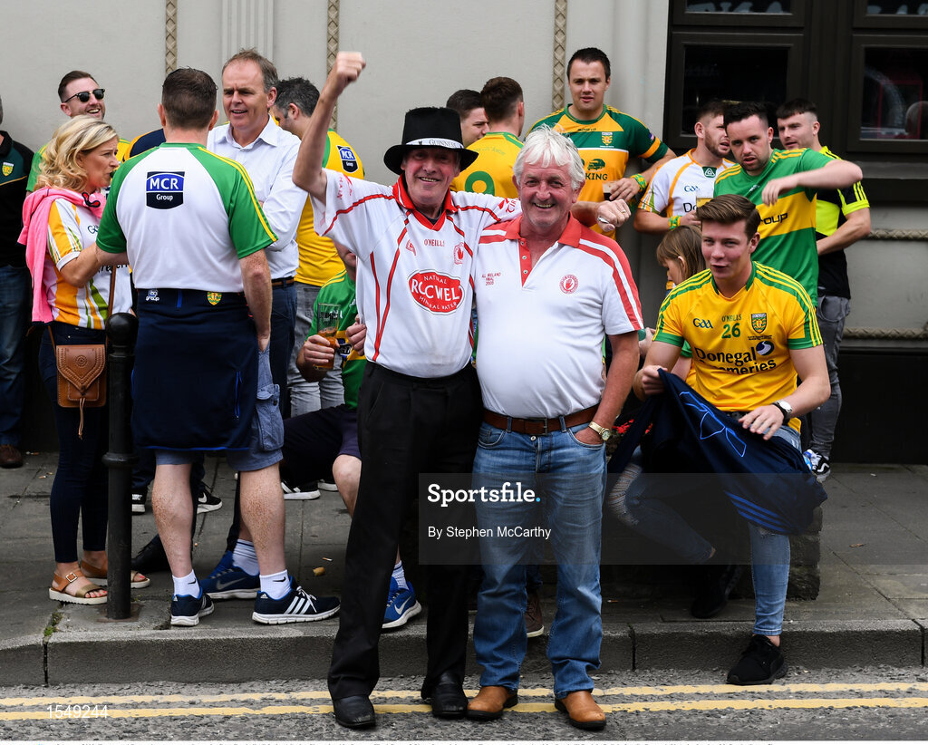 5 August 2018; Tyrone and Donegal supporters prior to the GAA Football All-Ireland Senior Championship Quarter-Final Group 2 Phase 3 match between Tyrone and Donegal at MacCumhaill Park in Ballybofey, Co Donegal. Photo by Stephen McCarthy/Sportsfile