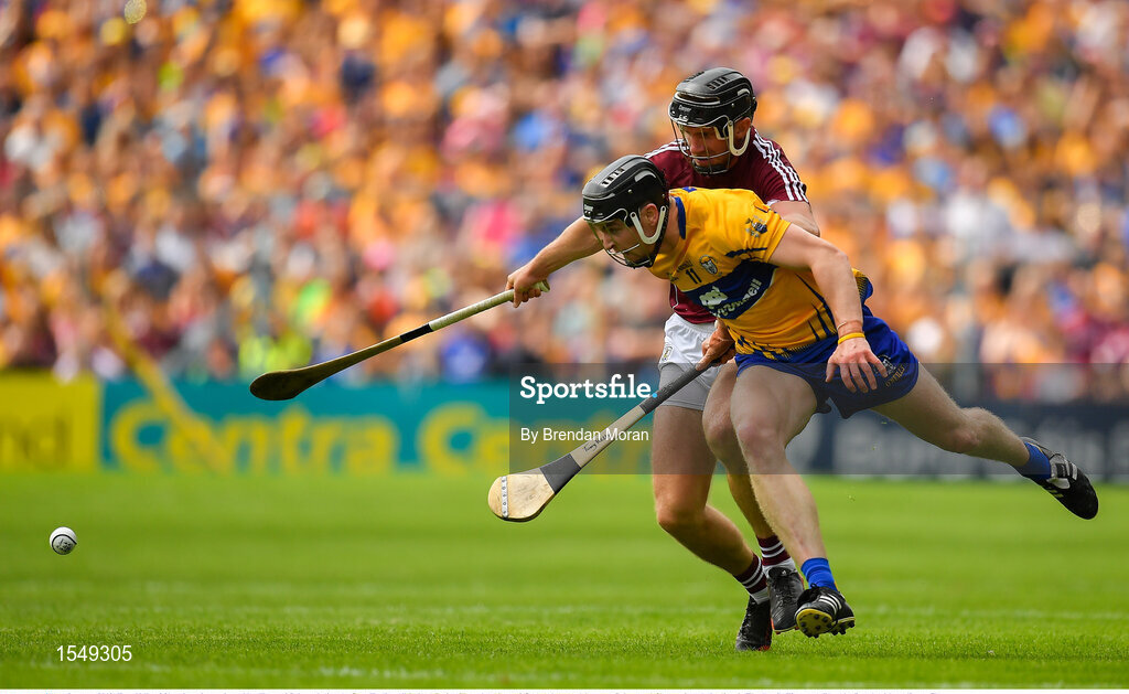 5 August 2018; Tony Kelly of Clare in action against Aidan Harte of Galway during the GAA Hurling All-Ireland Senior Championship semi-final replay match between Galway and Clare at Semple Stadium in Thurles, Co Tipperary. Photo by Brendan Moran/Sportsfile