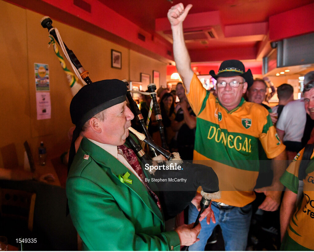5 August 2018; Bagpiper and Donegal supporter Christy Murray, from Raphoe, Co Donegal, plays for the crowd prior to the GAA Football All-Ireland Senior Championship Quarter-Final Group 2 Phase 3 match between Tyrone and Donegal at MacCumhaill Park in Ballybofey, Co Donegal. Photo by Stephen McCarthy/Sportsfile