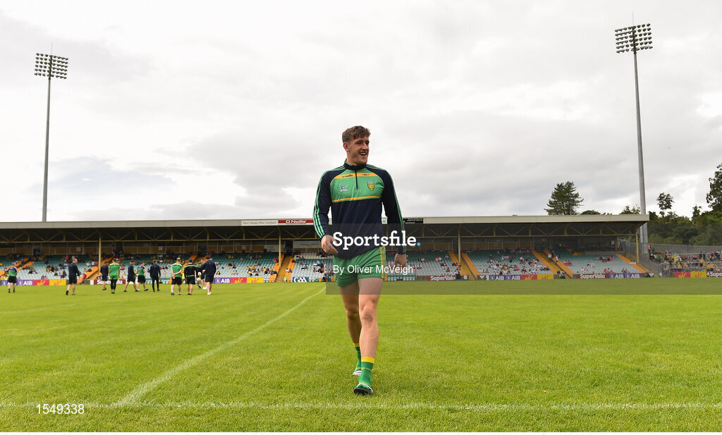 5 August 2018; Hugh McFadden of Donegal out on the pitch before the GAA Football All-Ireland Senior Championship Quarter-Final Group 2 Phase 3 match between Tyrone and Donegal at MacCumhaill Park in Ballybofey, Co Donegal. Photo by Oliver McVeigh/Sportsfile