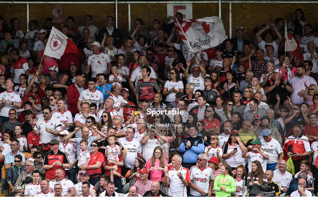 5 August 2018; Tyrone supporters during the GAA Football All-Ireland Senior Championship Quarter-Final Group 2 Phase 3 match between Tyrone and Donegal at MacCumhaill Park in Ballybofey, Co Donegal. Photo by Oliver McVeigh/Sportsfile