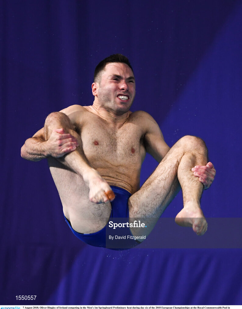 7 August 2018; Oliver Dingley of Ireland competing in the Men's 1m Springboard Preliminary heat during day six of the 2018 European Championships at the Royal Commonwealth Pool in Edinburgh, Scotland. Photo by David Fitzgerald/Sportsfile
