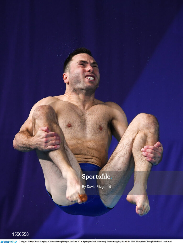 7 August 2018; Oliver Dingley of Ireland competing in the Men's 1m Springboard Preliminary heat during day six of the 2018 European Championships at the Royal Commonwealth Pool in Edinburgh, Scotland. Photo by David Fitzgerald/Sportsfile