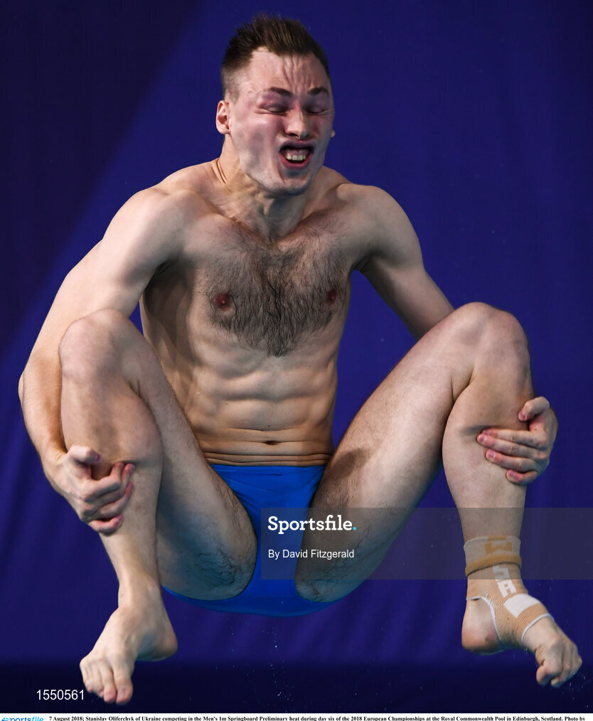 7 August 2018; Stanislav Oliferchyk of Ukraine competing in the Men's 1m Springboard Preliminary heat during day six of the 2018 European Championships at the Royal Commonwealth Pool in Edinburgh, Scotland. Photo by David Fitzgerald/Sportsfile