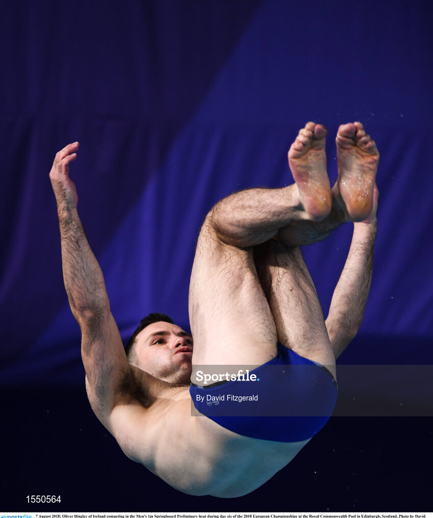 7 August 2018; Oliver Dingley of Ireland competing in the Men's 1m Springboard Preliminary heat during day six of the 2018 European Championships at the Royal Commonwealth Pool in Edinburgh, Scotland. Photo by David Fitzgerald/Sportsfile
