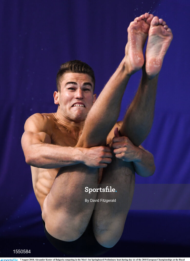 7 August 2018; Alexander Kostov of Bulgaria competing in the Men's 1m Springboard Preliminary heat during day six of the 2018 European Championships at the Royal Commonwealth Pool in Edinburgh, Scotland. Photo by David Fitzgerald/Sportsfile