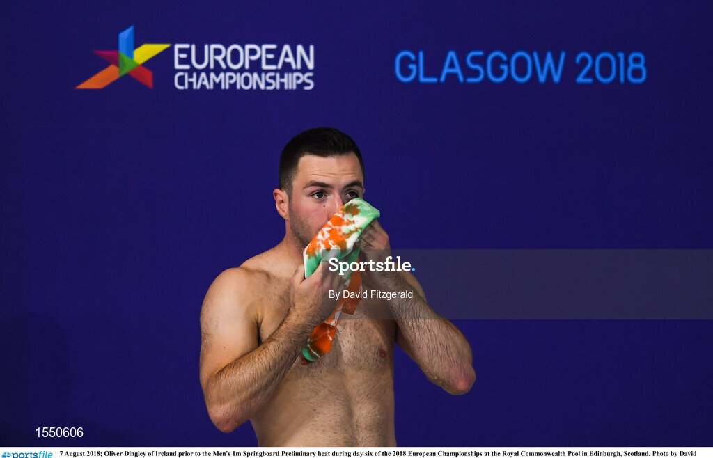 7 August 2018; Oliver Dingley of Ireland prior to the Men's 1m Springboard Preliminary heat during day six of the 2018 European Championships at the Royal Commonwealth Pool in Edinburgh, Scotland. Photo by David Fitzgerald/Sportsfile
