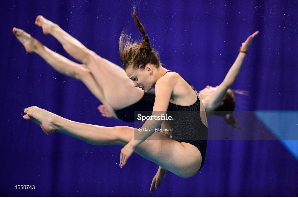 7 August 2018; Valeriia Liulko and Sofiia Lyskun of Ukraine competing in the Women's Synchronised 10m Platform final during day six of the 2018 European Championships at the Royal Commonwealth Pool in Edinburgh, Scotland. Photo by David Fitzgerald/Sportsfile