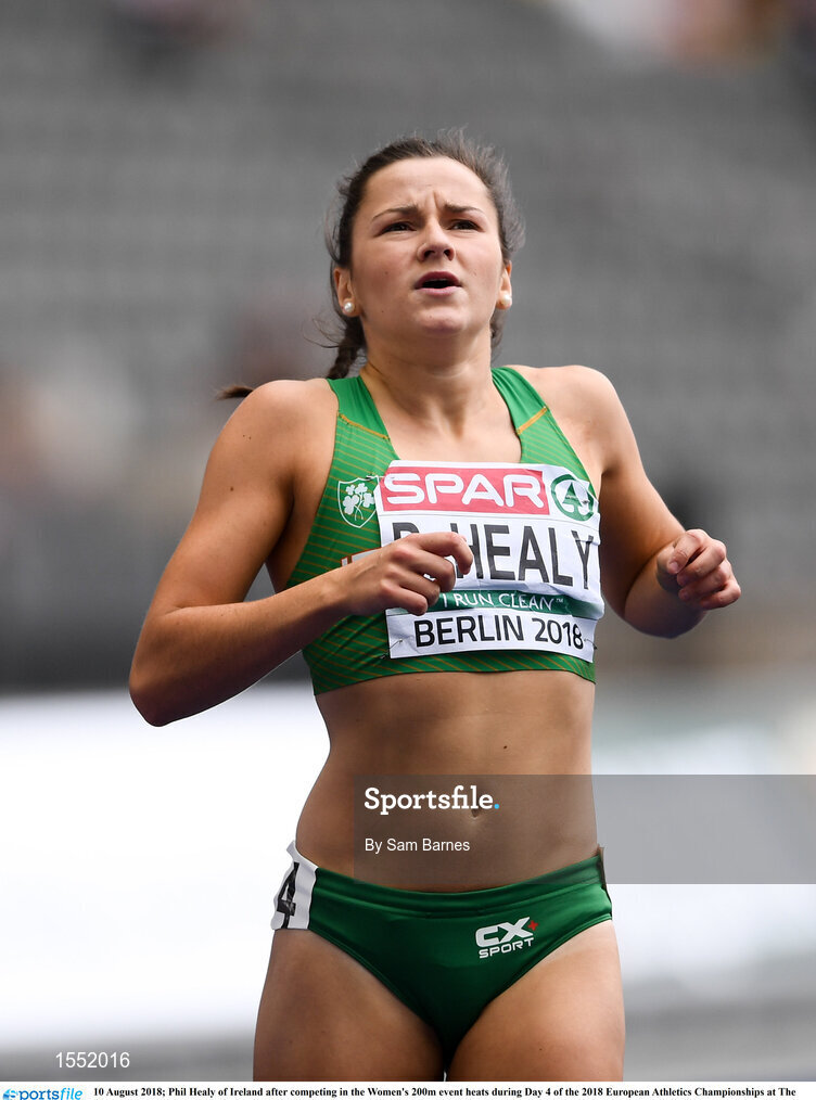 10 August 2018; Phil Healy of Ireland after competing in the Women's 200m event heats during Day 4 of the 2018 European Athletics Championships at The Olympic Stadium in Berlin, Germany. Photo by Sam Barnes/Sportsfile