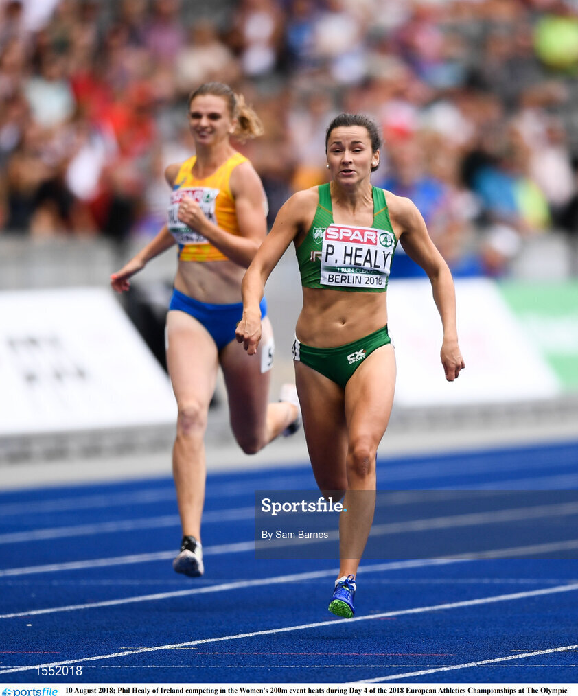 10 August 2018; Phil Healy of Ireland competing in the Women's 200m event heats during Day 4 of the 2018 European Athletics Championships at The Olympic Stadium in Berlin, Germany. Photo by Sam Barnes/Sportsfile