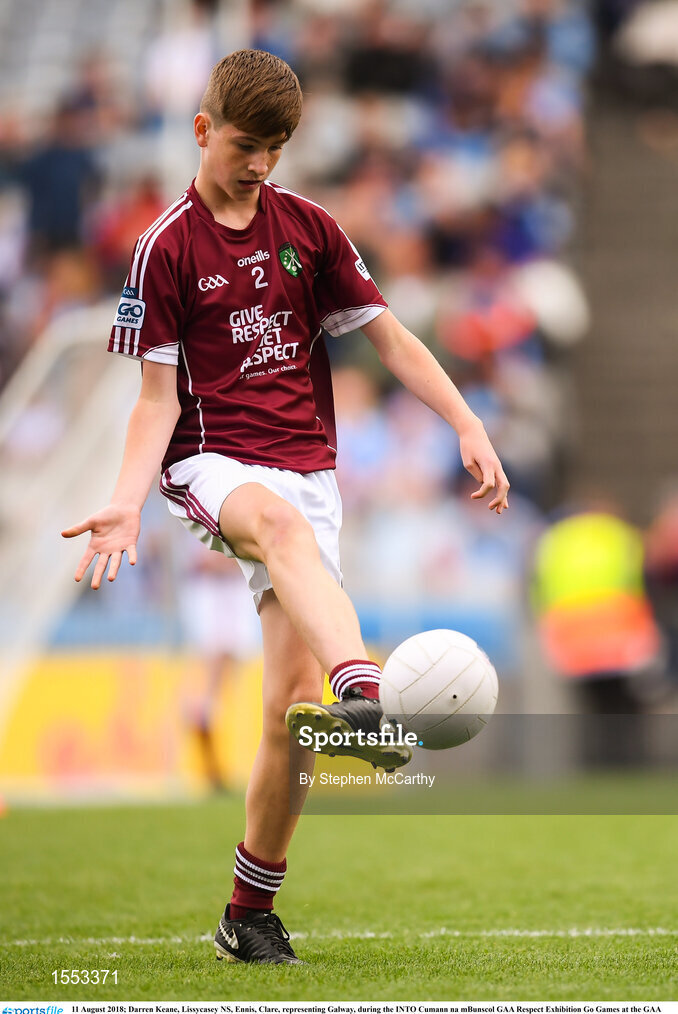 11 August 2018; Darren Keane, Lissycasey NS, Ennis, Clare, representing Galway, during the INTO Cumann na mBunscol GAA Respect Exhibition Go Games at the GAA Football All-Ireland Senior Championship Semi Final match between Dublin and Galway at Croke Park in Dublin. Photo by Stephen McCarthy/Sportsfile
