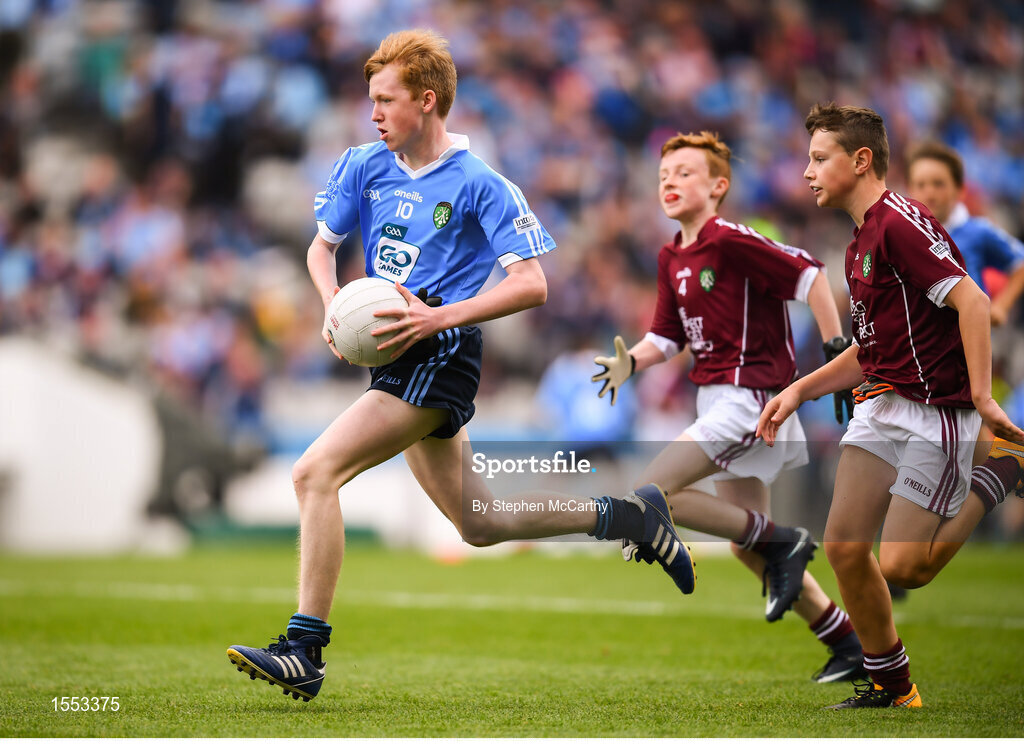 11 August 2018; James Tully, Clifferna NS, Stradone, Cavan, representing Dublin, during the INTO Cumann na mBunscol GAA Respect Exhibition Go Games at the GAA Football All-Ireland Senior Championship Semi Final match between Dublin and Galway at Croke Park in Dublin. Photo by Stephen McCarthy/Sportsfile