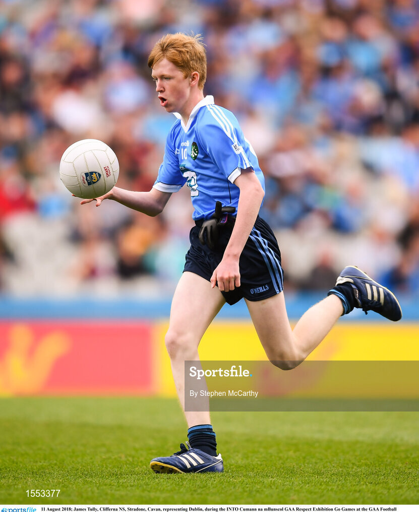11 August 2018; James Tully, Clifferna NS, Stradone, Cavan, representing Dublin, during the INTO Cumann na mBunscol GAA Respect Exhibition Go Games at the GAA Football All-Ireland Senior Championship Semi Final match between Dublin and Galway at Croke Park in Dublin. Photo by Stephen McCarthy/Sportsfile