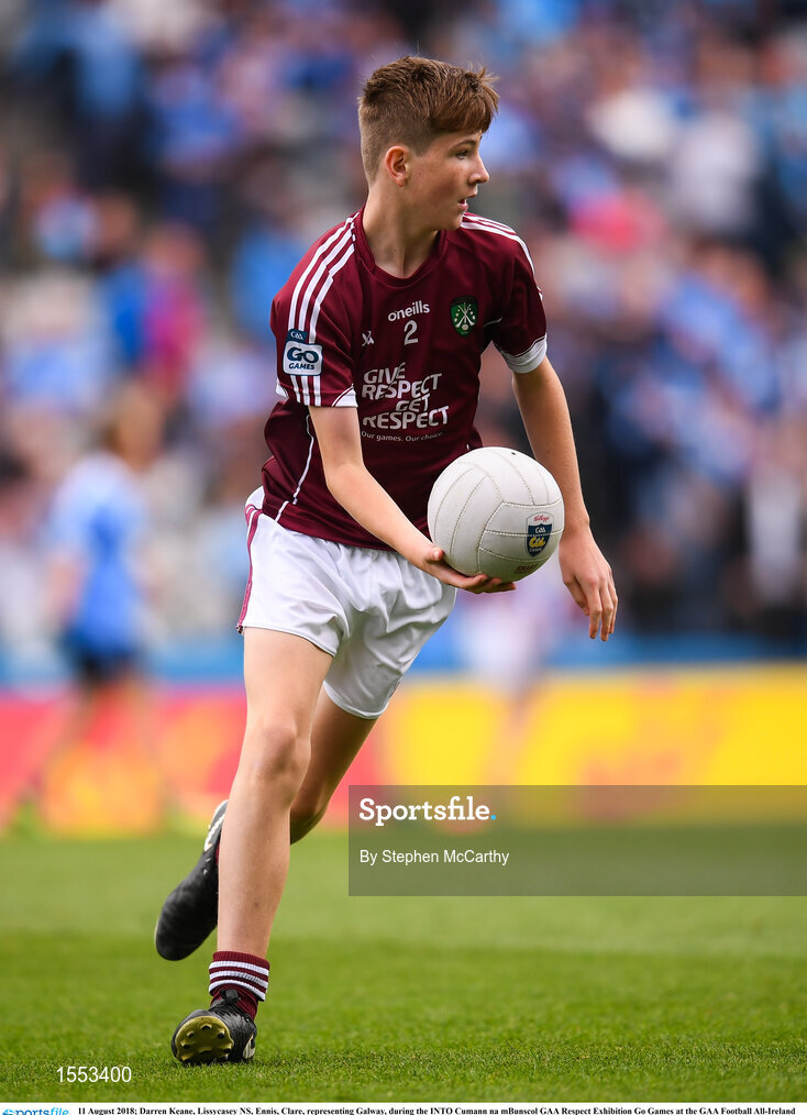 11 August 2018; Darren Keane, Lissycasey NS, Ennis, Clare, representing Galway, during the INTO Cumann na mBunscol GAA Respect Exhibition Go Games at the GAA Football All-Ireland Senior Championship Semi Final match between Dublin and Galway at Croke Park in Dublin. Photo by Stephen McCarthy/Sportsfile