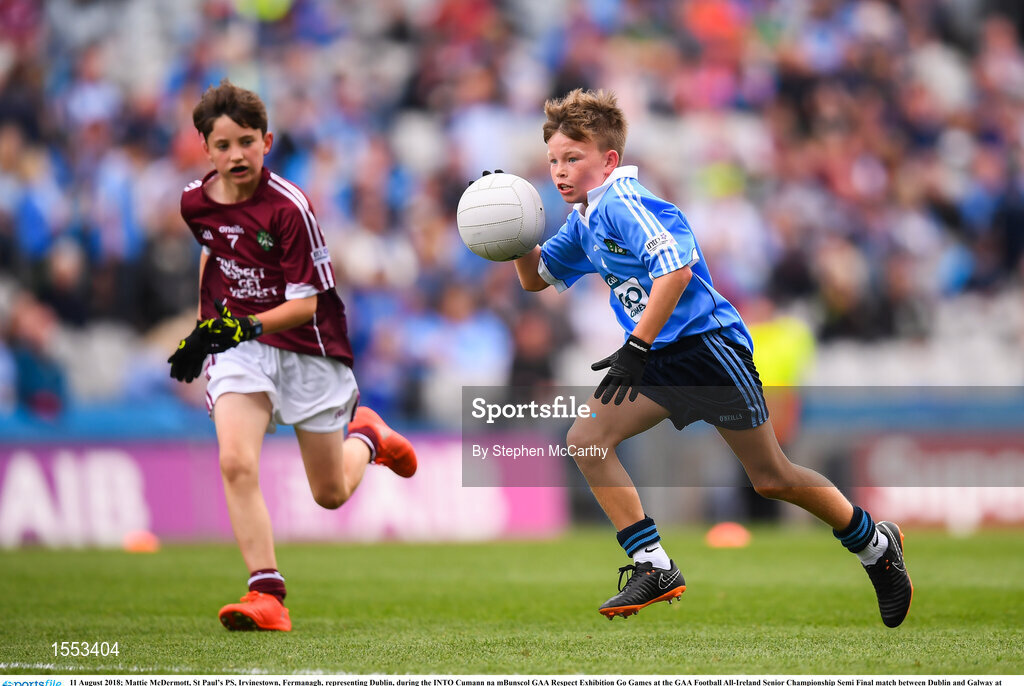 11 August 2018; Mattie McDermott, St Paul’s PS, Irvinestown, Fermanagh, representing Dublin, during the INTO Cumann na mBunscol GAA Respect Exhibition Go Games at the GAA Football All-Ireland Senior Championship Semi Final match between Dublin and Galway at Croke Park in Dublin. Photo by Stephen McCarthy/Sportsfile