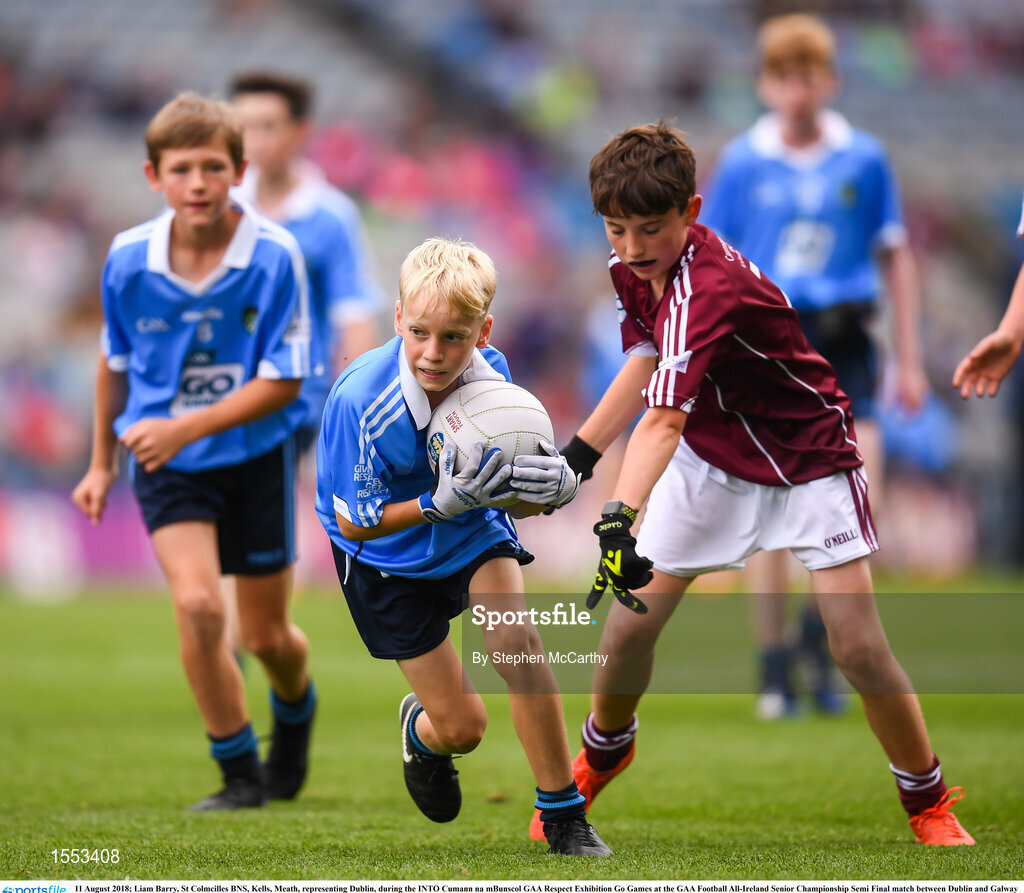 11 August 2018; Liam Barry, St Colmcilles BNS, Kells, Meath, representing Dublin, during the INTO Cumann na mBunscol GAA Respect Exhibition Go Games at the GAA Football All-Ireland Senior Championship Semi Final match between Dublin and Galway at Croke Park in Dublin. Photo by Stephen McCarthy/Sportsfile