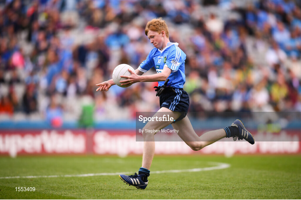 11 August 2018; James Tully, Clifferna NS, Stradone, Cavan, representing Dublin, during the INTO Cumann na mBunscol GAA Respect Exhibition Go Games at the GAA Football All-Ireland Senior Championship Semi Final match between Dublin and Galway at Croke Park in Dublin. Photo by Stephen McCarthy/Sportsfile